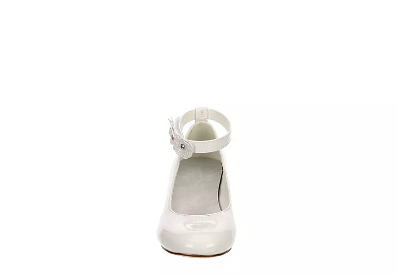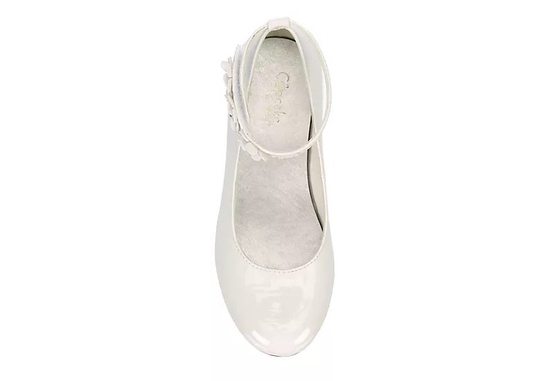 Your search for the perfect pair of formal shoes for your girl is over with the Flora dress shoe by Cupcake Couture. These shoes are designed with a faux patent leather upper, medium heel, and a lovely floral decorated ankle strap. She will look absolutely lovely in these shoes for her next special occasion.
