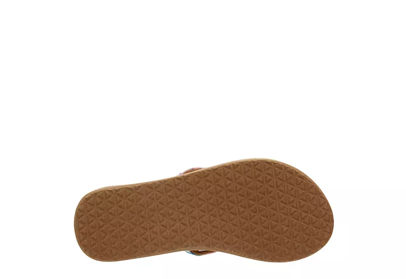 She’ll look cute and stylish in the Isla girls’ flip flop sandal from Cupcake Couture. With a multi-colored fabric and rubber upper, this open-toe sandal is perfect for walking or lounging around. The padded footbed cushions her foot, while the rubber outsole provides slip-resistant traction.
