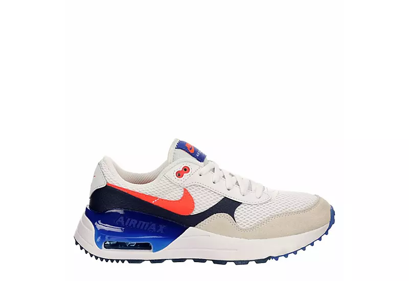 Throw it back to before he was born, the ’80s, with the Nike Air Max SYSTM BG boys’ sneaker. Featuring a breathable mixed material upper for sleek durability, this lace-up sneaker is a modern update on a cool design that still works. The visible Air technology & foam cushioning offer lightweight comfort and support with every step.Â
