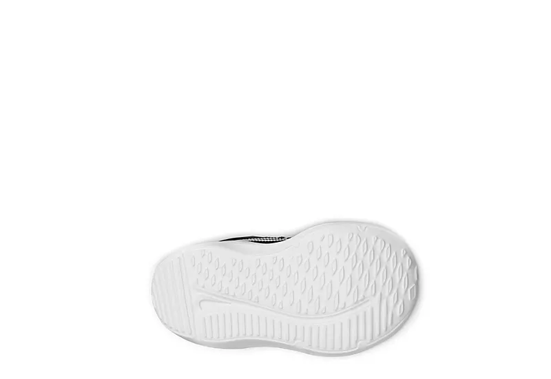 Watch him move in the Nike Downshifter 12 infant boys’ slip-on sneaker. With a mesh & synthetic upper and padded collar& tongue for extra comfort, this slip-on shoe with lace-up front and Velcro ankle strap is lightweight. The cushioned footbed supports every little stride while he counts on the rubber sole for some bounce.